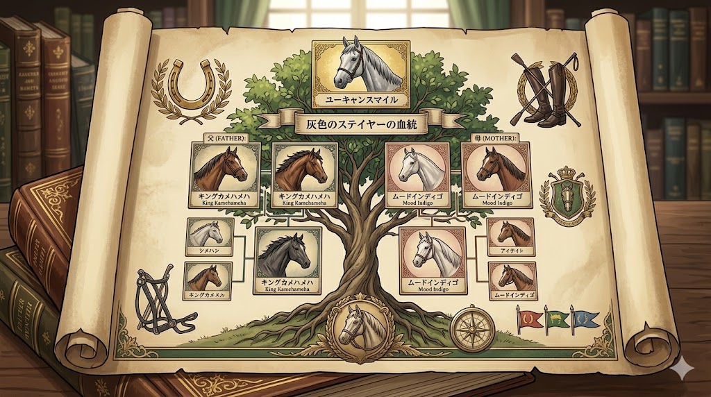 ユーキャンスマイルの父は、日本競馬の至宝とも言える大種牡馬キングカメハメハです。